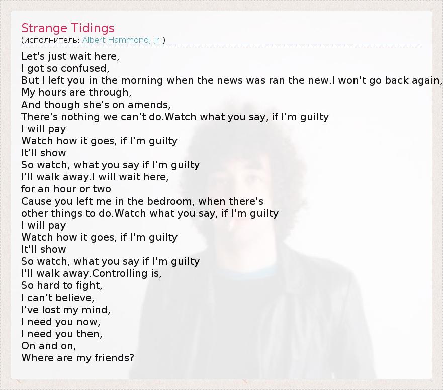 А как ты думаешь, о чем песня "Strange Tidings" ?