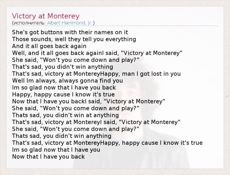That's sad, victory at MontereyHappy, man I got lost in you