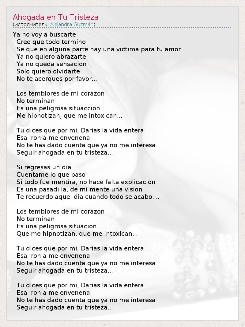 А как ты думаешь, о чем песня "Ahogada en Tu Tristeza" ?