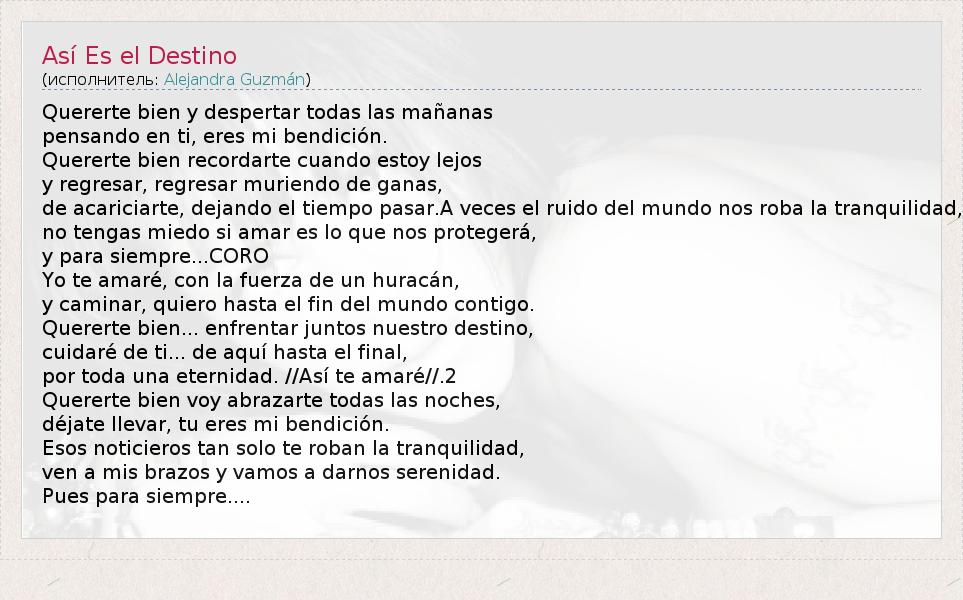А как ты думаешь, о чем песня "Así Es el Destino" ?