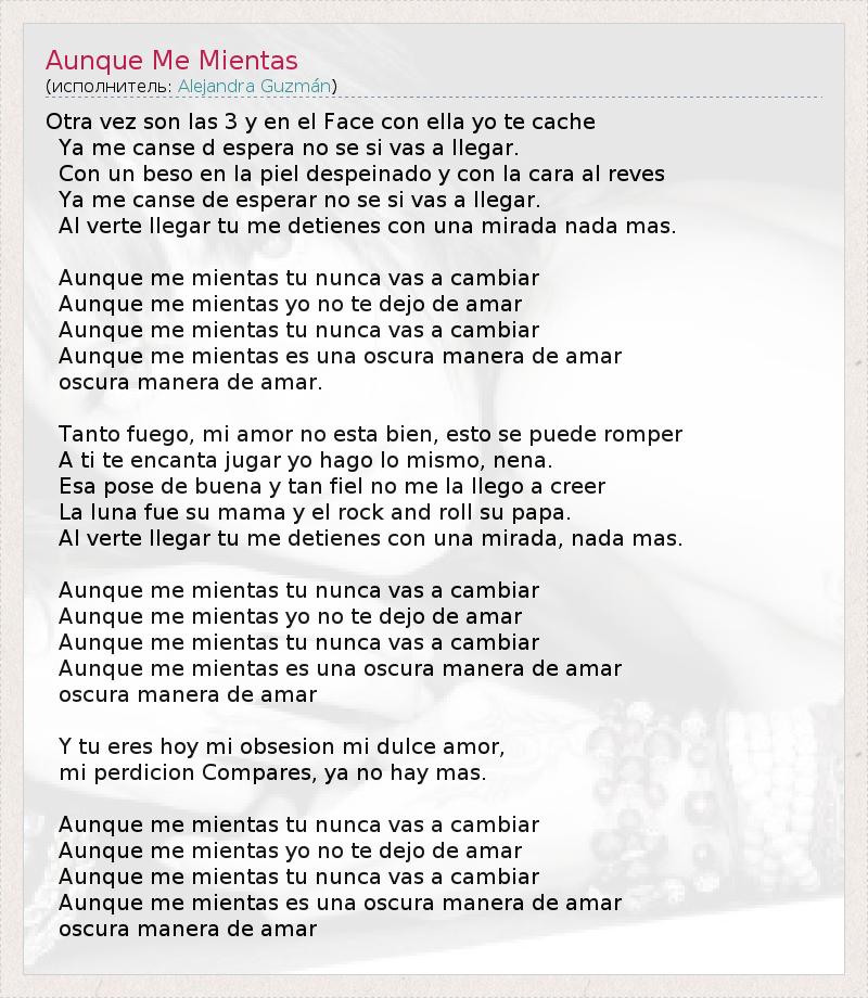 А как ты думаешь, о чем песня "Aunque Me Mientas" ?