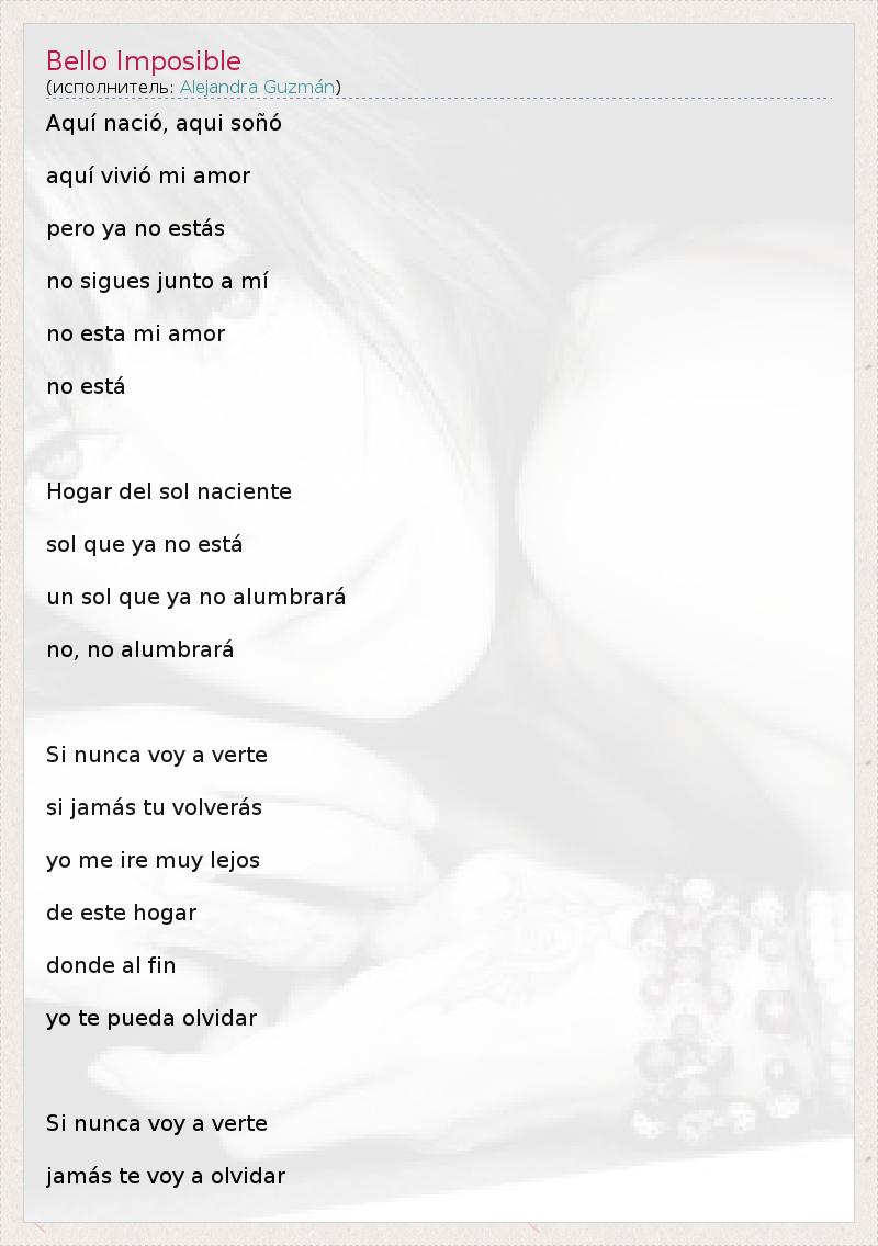 А как ты думаешь, о чем песня "Bello Imposible" ?