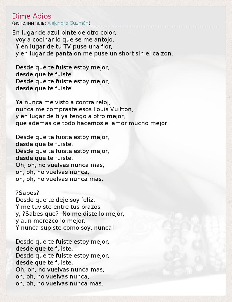 А как ты думаешь, о чем песня "Dime Adios" ?