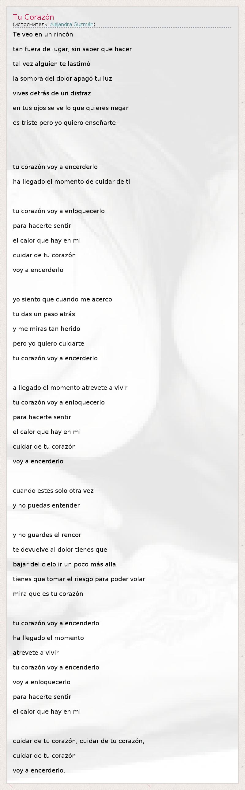 А как ты думаешь, о чем песня "Tu Corazón" ?