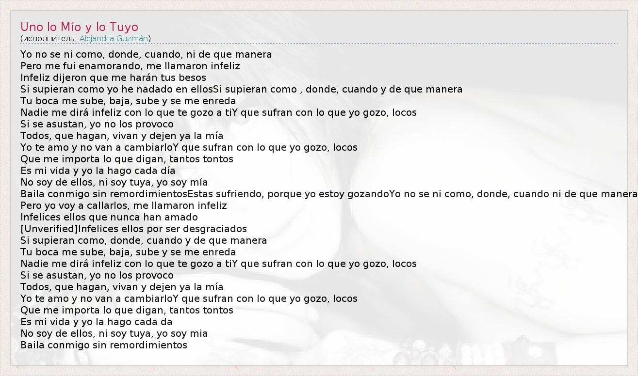 А как ты думаешь, о чем песня "Uno lo Mío y lo Tuyo" ?