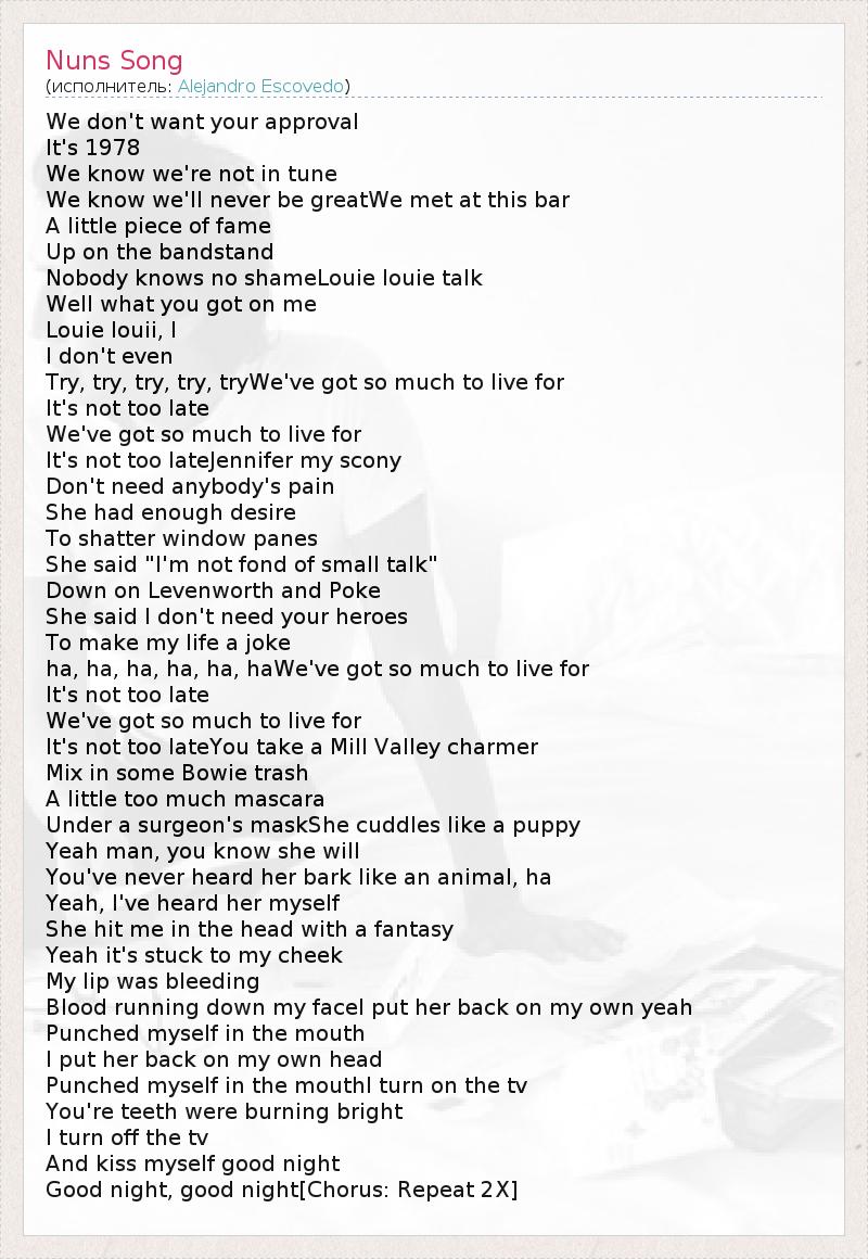 А как ты думаешь, о чем песня "Nuns Song" ?