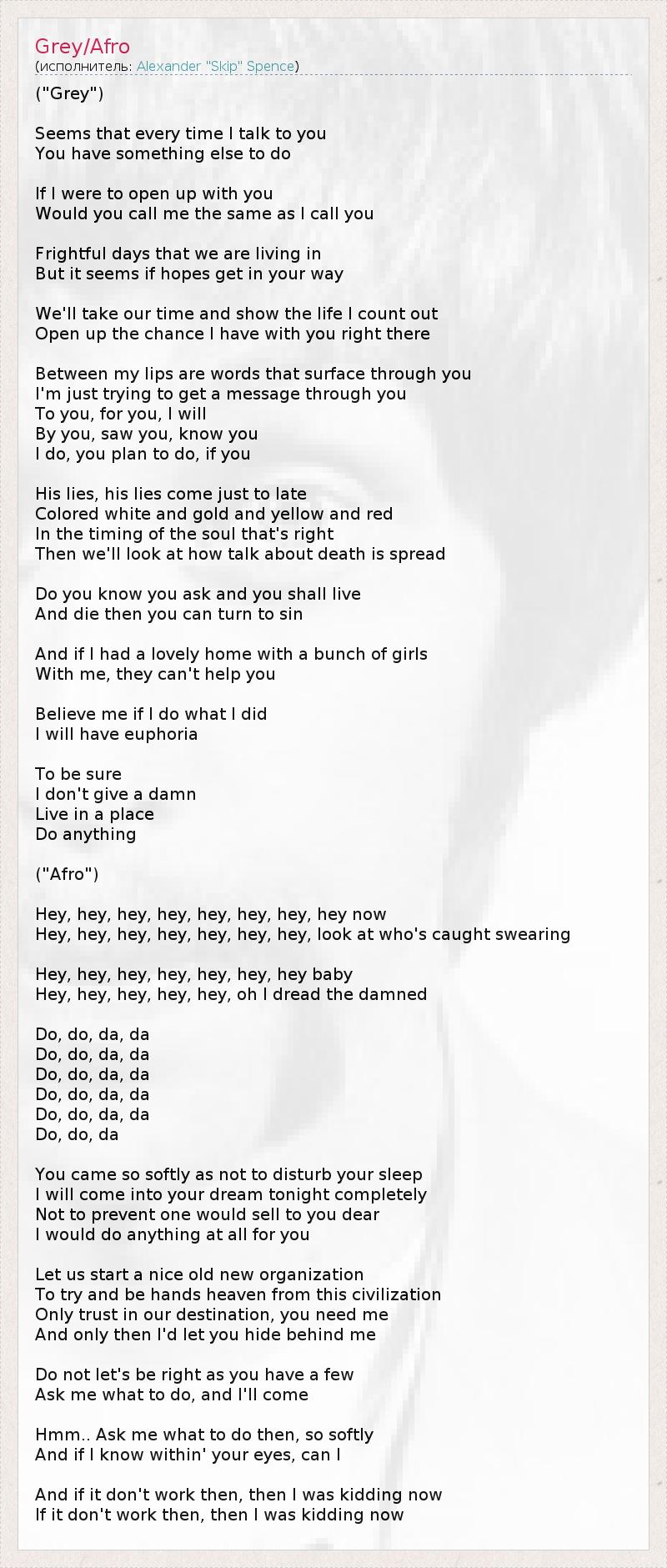 А как ты думаешь, о чем песня "Grey/Afro" ?