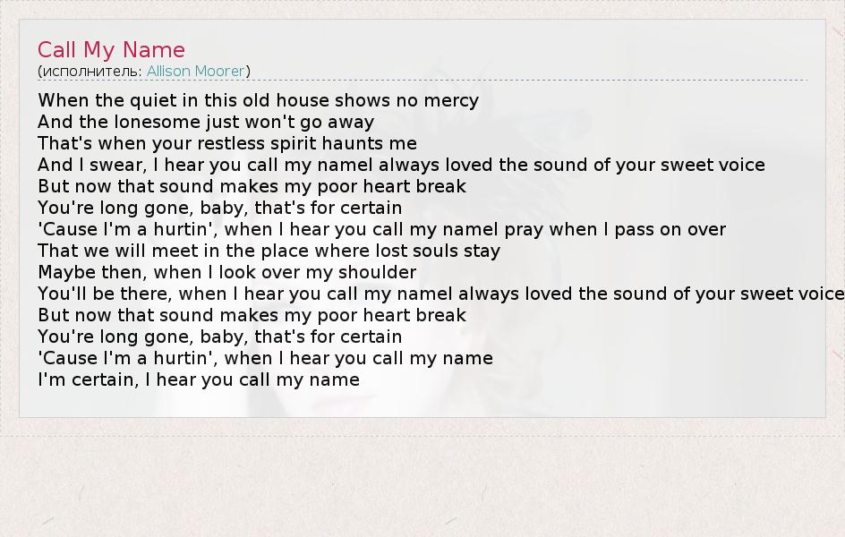 You'll be there, when I hear you call my nameI always loved the sound of your sweet voice