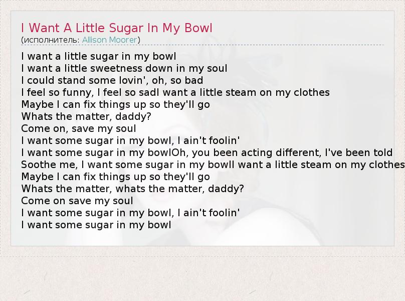А как ты думаешь, о чем песня "I Want A Little Sugar In My Bowl" ?