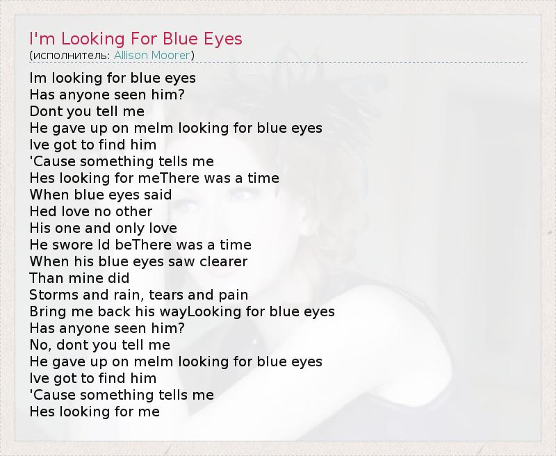 А как ты думаешь, о чем песня "I'm Looking For Blue Eyes" ?