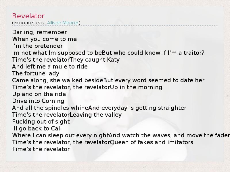 Time's the revelator, the revelatorQueen of fakes and imitators