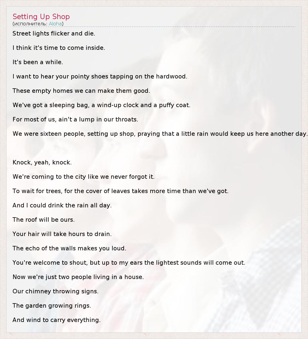 А как ты думаешь, о чем песня "Setting Up Shop" ?