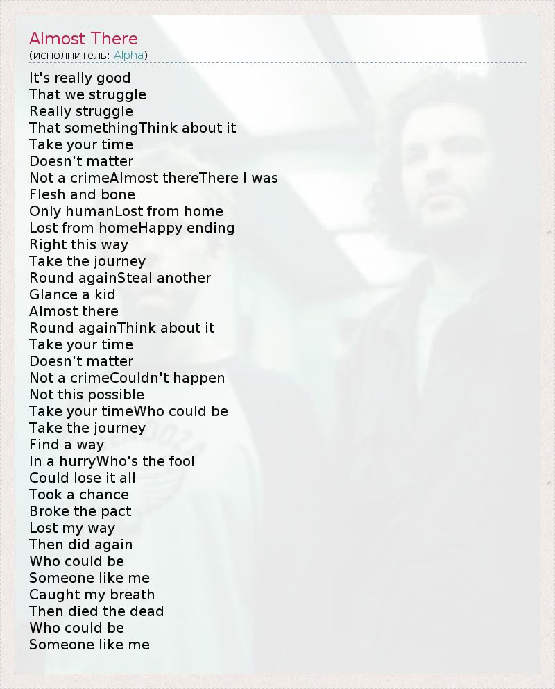 А как ты думаешь, о чем песня "Almost There" ?