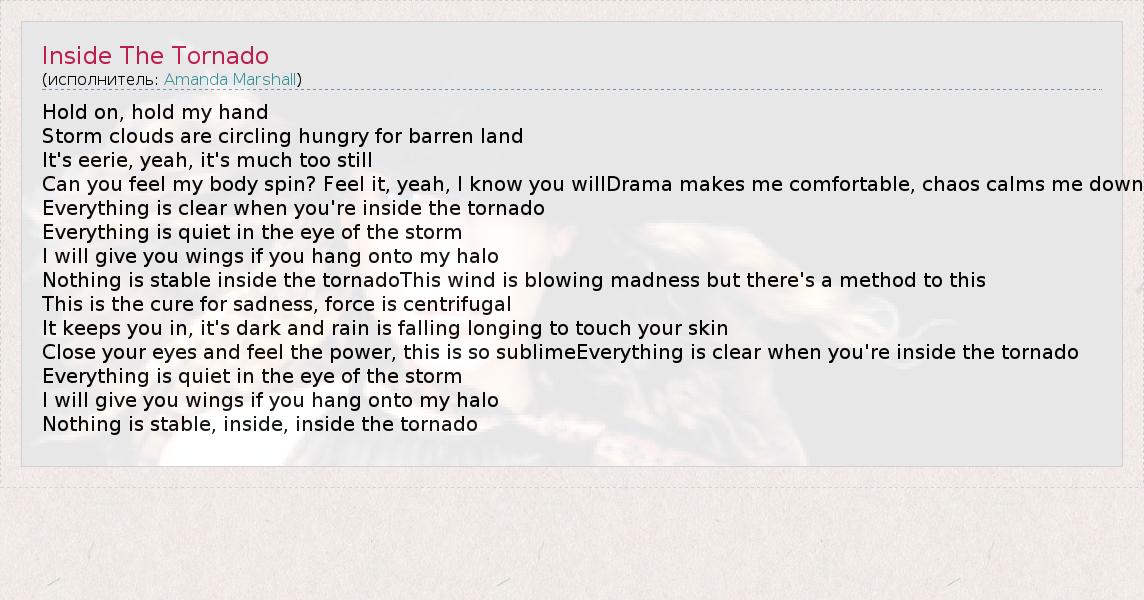 А как ты думаешь, о чем песня "Inside The Tornado" ?
