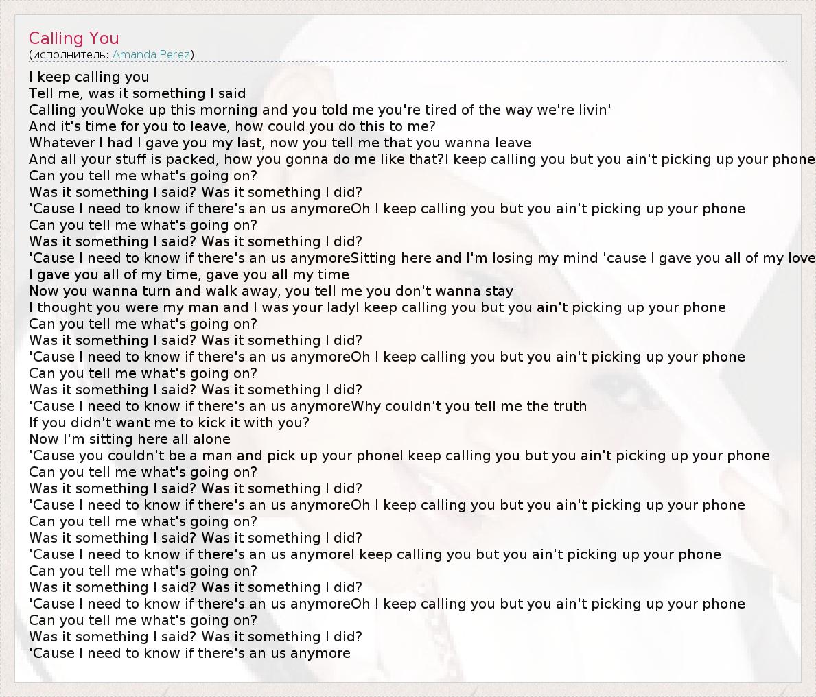 'Cause I need to know if there's an us anymoreOh I keep calling you but you ain't picking up your phone