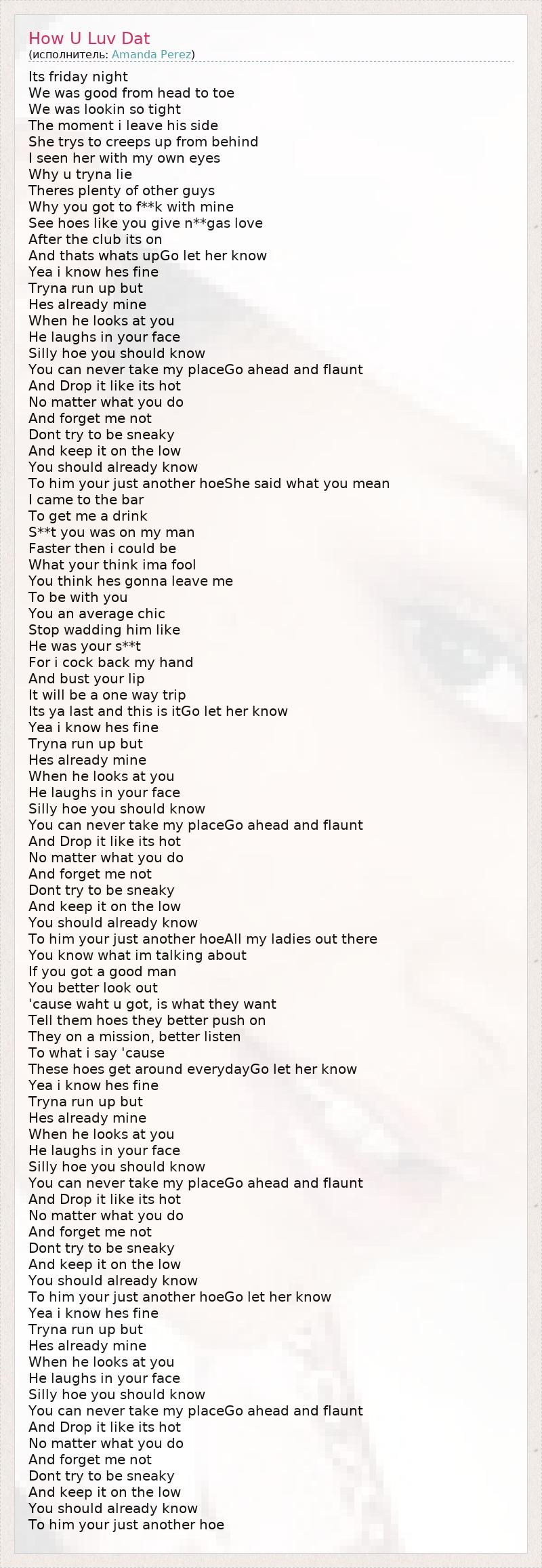 А как ты думаешь, о чем песня "How U Luv Dat" ?