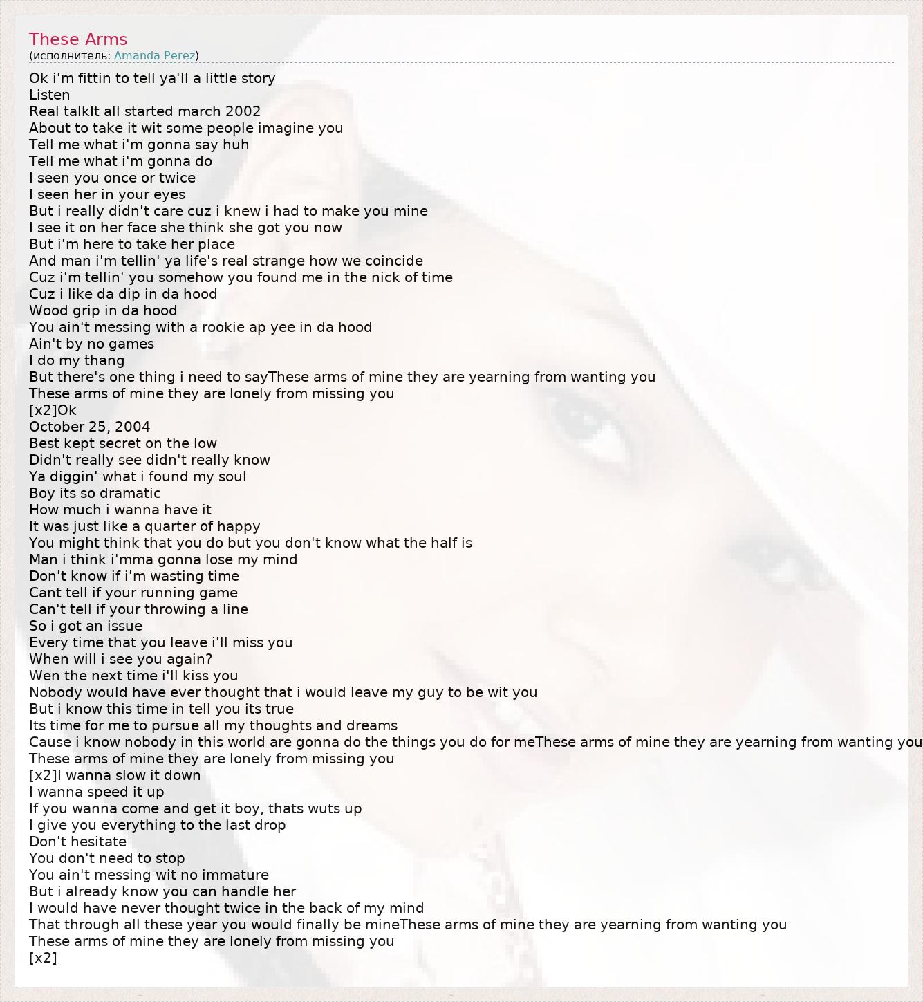 But there's one thing i need to sayThese arms of mine they are yearning from wanting you