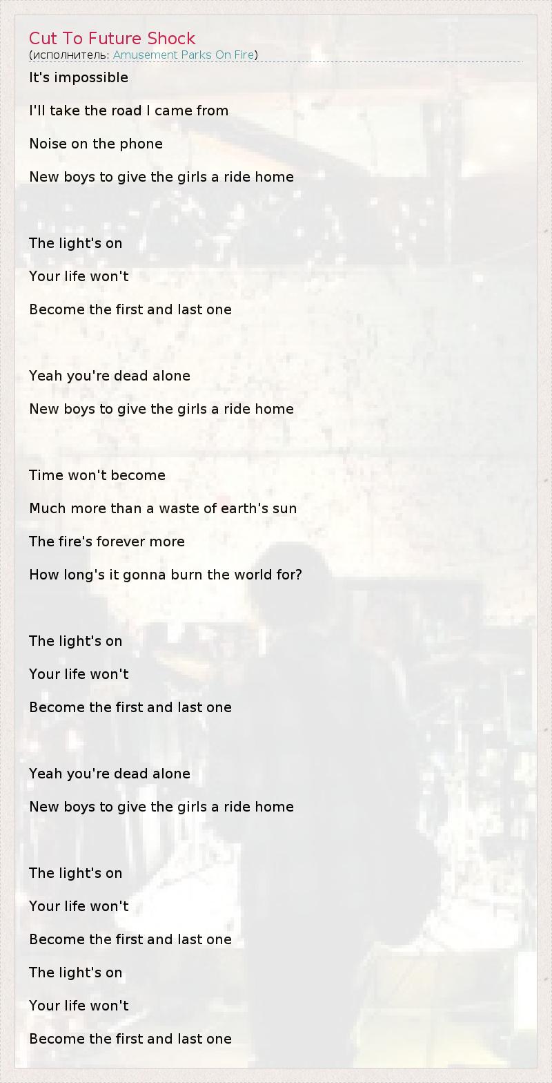 А как ты думаешь, о чем песня "Cut To Future Shock" ?