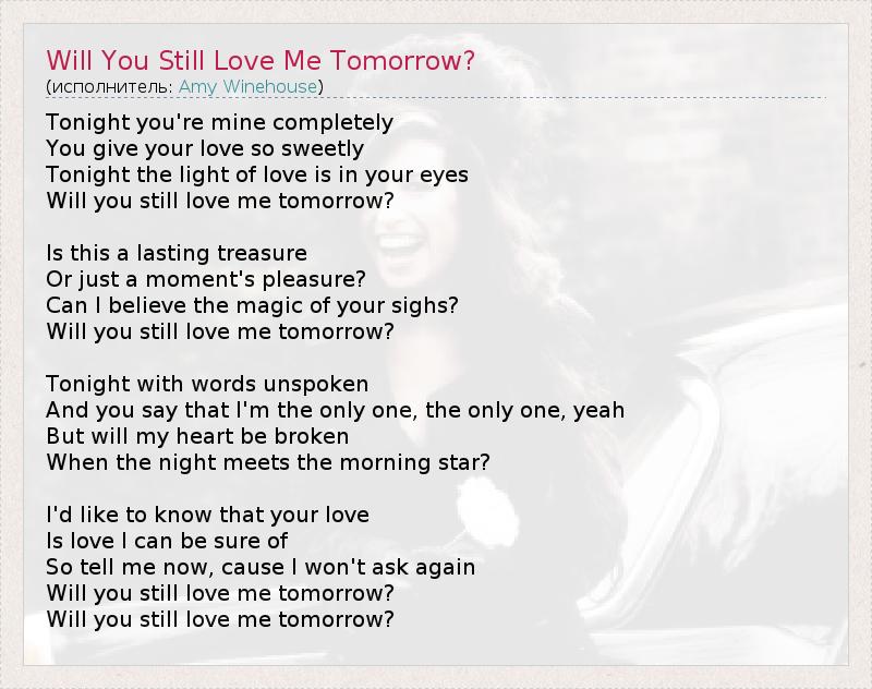 А как ты думаешь, о чем песня "Will You Still Love Me Tomorrow?" ?