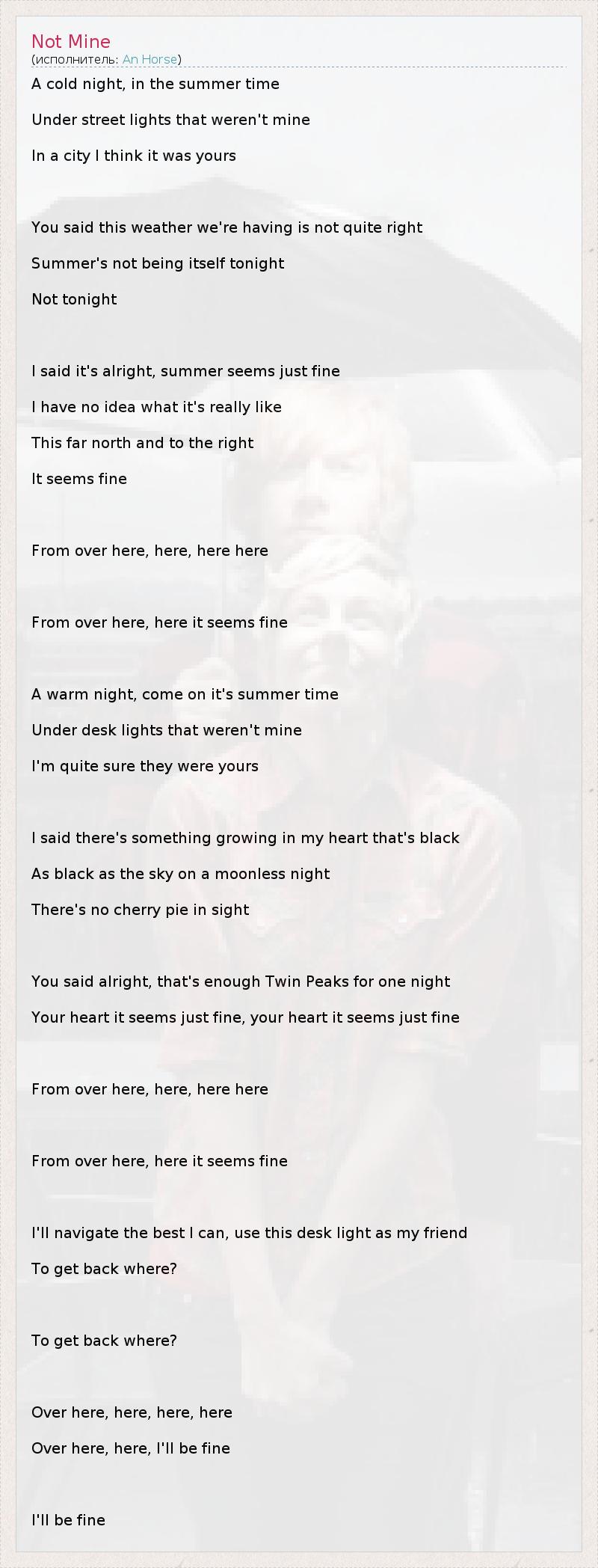 А как ты думаешь, о чем песня "Not Mine" ?