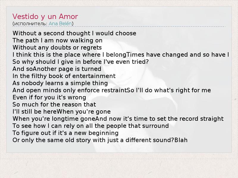 А как ты думаешь, о чем песня "Vestido y un Amor" ?