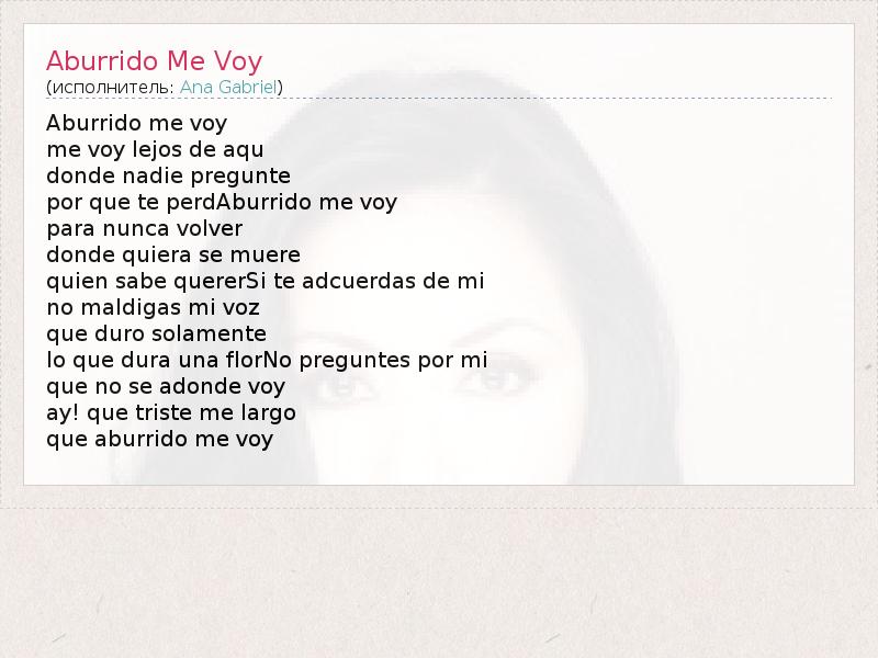 А как ты думаешь, о чем песня "Aburrido Me Voy" ?