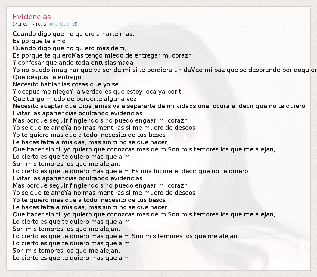Cuando digo que no quiero amarte mas, Es porque te amo Cuando digo que no quiero mas de ti, Es porque te quieroMas tengo miedo de entregar mi corazn Y confesar que ando toda entusiasmada Yo no puedo imaginar que va ser de mi si te perdiera un daVeo mi paz que se desprende por doquier Que despus te entrego Necesito hablar las cosas que yo se Y despus me niegoY la verdad es que estoy loca ya por ti Que tengo miedo de perderte alguna vez Necesito aceptar que Dios jamas va a separarte de mi vidaEs una locura el decir que no te quiero Evitar las apariencias ocultando evidencias Mas porque seguir fingiendo sino puedo engaar mi corazn Yo se que te amoYa no mas mentiras si me muero de deseos Yo te quiero mas que a todo, necesito de tus besos Le haces falta a mis das, mas sin ti no se que hacer, Que hacer sin ti, yo quiero que conozcas mas de miSon mis temores los que me alejan, Lo cierto es que te quiero mas que a mi Son mis temores los que me alejan, Lo cierto es que te quiero mas que a miEs una locura el decir que no te quiero Evitar las apariencias ocultando evidencias Mas porque seguir fingiendo sino puedo engaar mi corazn Yo se que te amoYa no mas mentiras si me muero de deseos Yo te quiero mas que a todo, necesito de tus besos Le haces falta a mis das, mas sin ti no se que hacer Que hacer sin ti, yo quiero que conozcas mas de miSon mis temores los que me alejan, Lo cierto es que te quiero mas que a mi Son mis temores los que me alejan, Lo cierto es que te quiero mas que a miSon mis temores los que me alejan, Lo cierto es que te quiero mas que a mi Son mis temores los que me alejan, Lo cierto es que te quiero mas que a mi