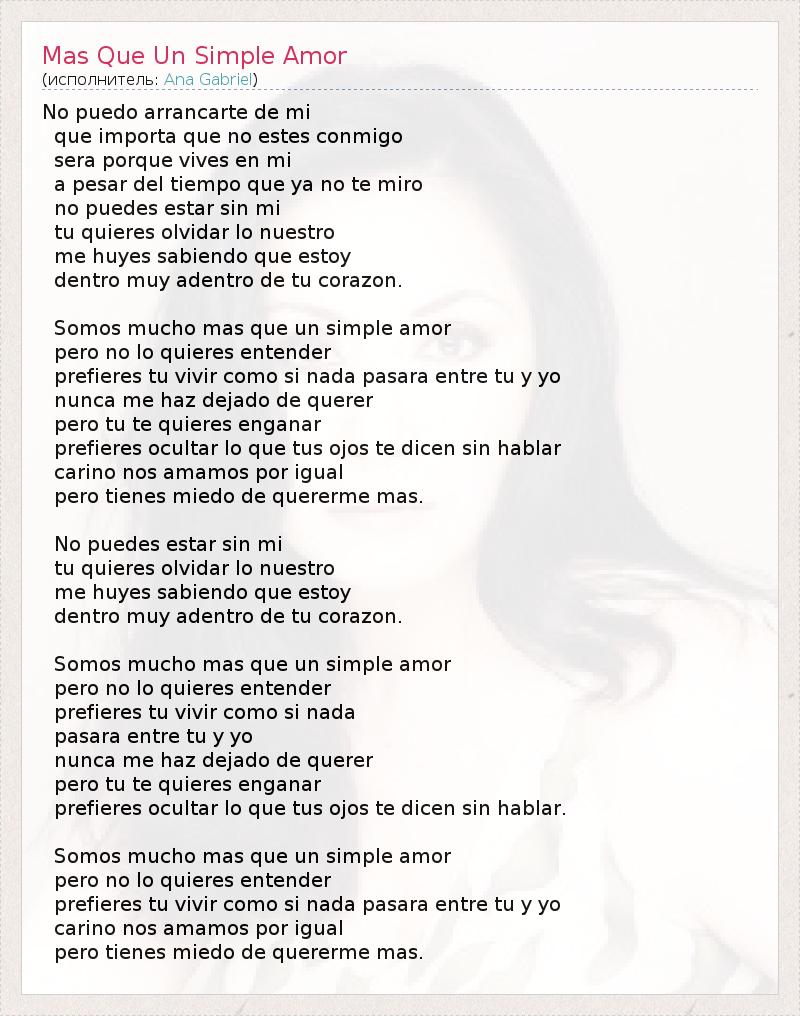 А как ты думаешь, о чем песня "Mas Que Un Simple Amor" ?