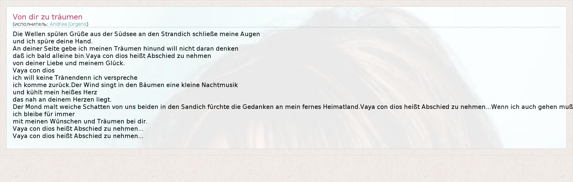 А как ты думаешь, о чем песня "Von dir zu träumen" ?