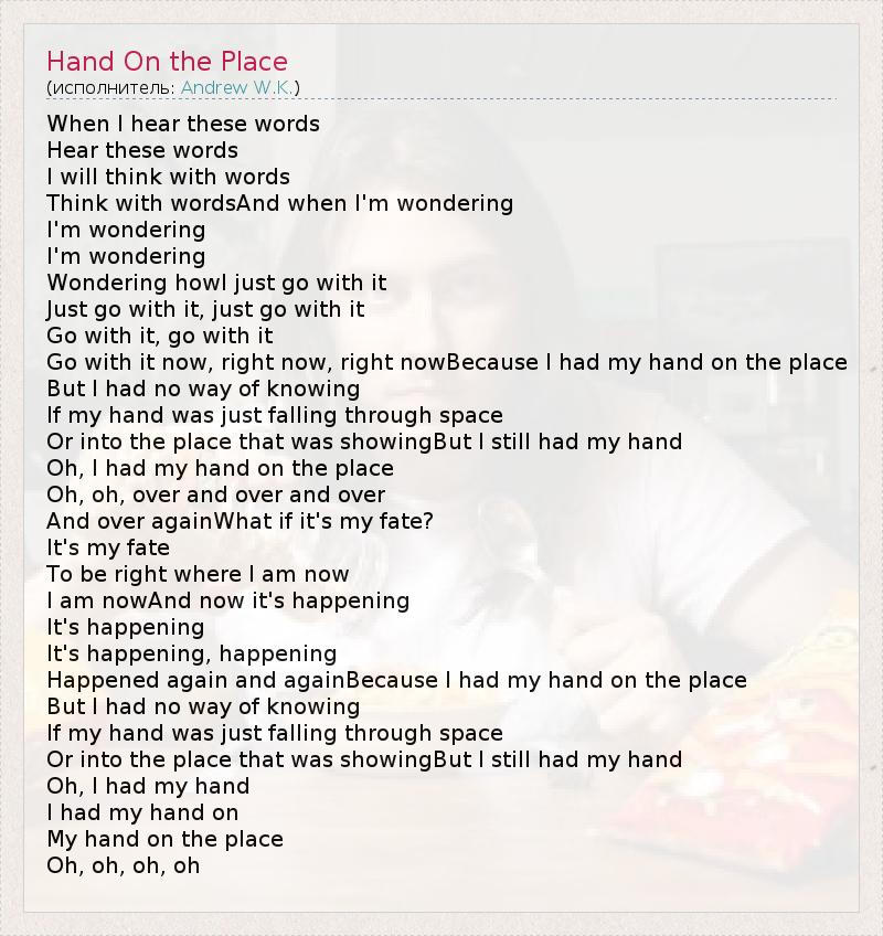 А как ты думаешь, о чем песня "Hand On the Place" ?