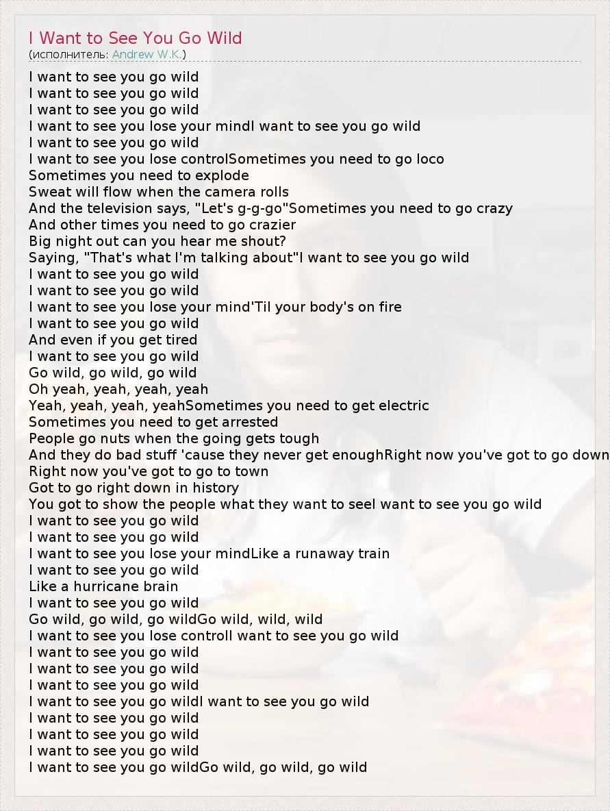 А как ты думаешь, о чем песня "I Want to See You Go Wild" ?