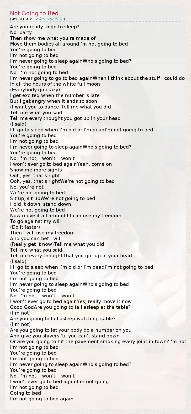 А как ты думаешь, о чем песня "Not Going to Bed" ?