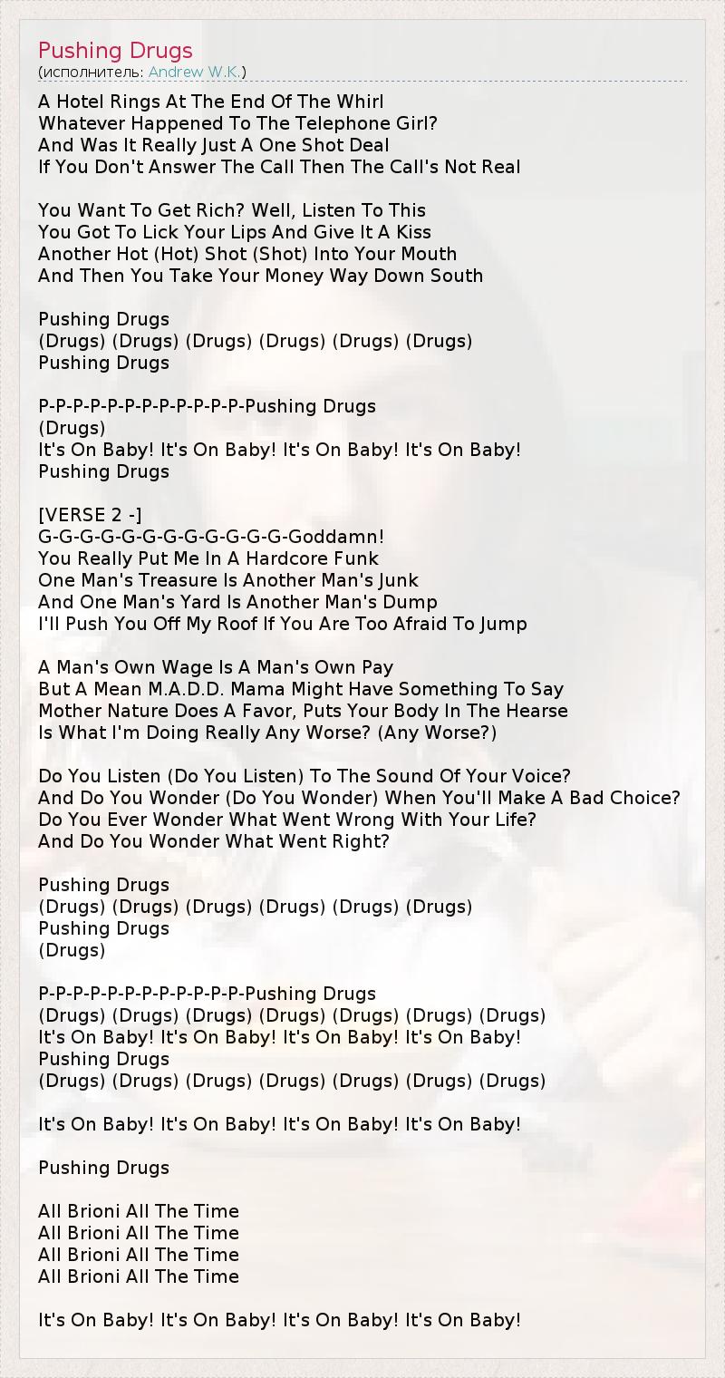 А как ты думаешь, о чем песня "Pushing Drugs" ?