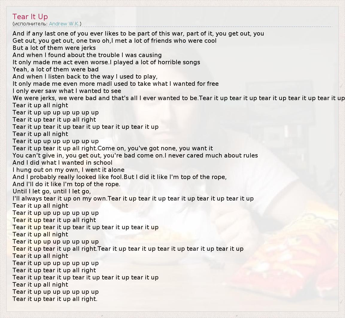 А как ты думаешь, о чем песня "Tear It Up" ?