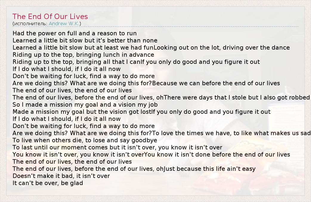 А как ты думаешь, о чем песня "The End Of Our Lives" ?