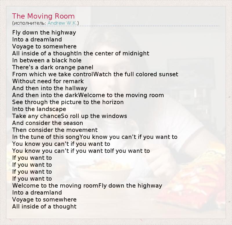 А как ты думаешь, о чем песня "The Moving Room" ?