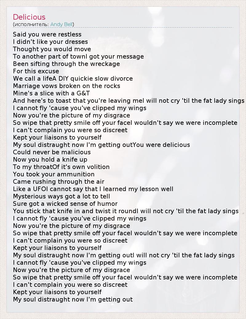 You stick that knife in and twist it roundI will not cry 'til the fat lady sings