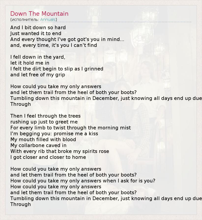 А как ты думаешь, о чем песня "Down The Mountain" ?