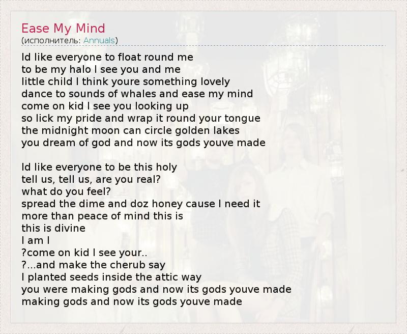 А как ты думаешь, о чем песня "Ease My Mind" ?