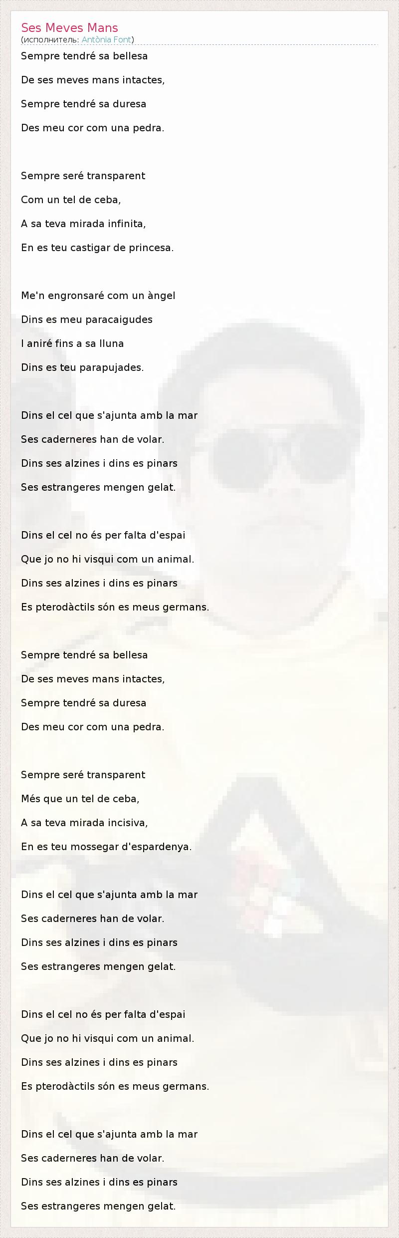 А как ты думаешь, о чем песня "Ses Meves Mans" ?