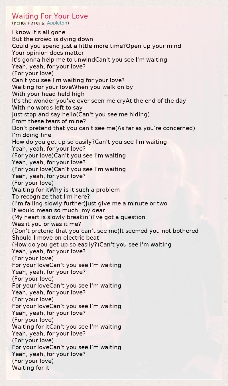 А как ты думаешь, о чем песня "Waiting For Your Love" ?