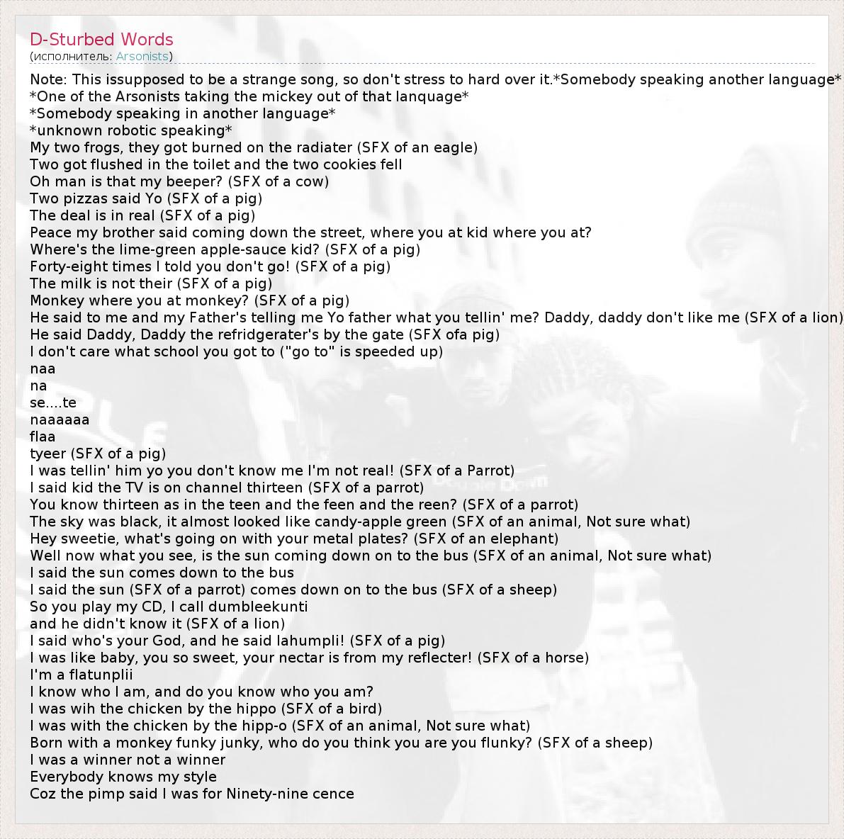 А как ты думаешь, о чем песня "D-Sturbed Words" ?