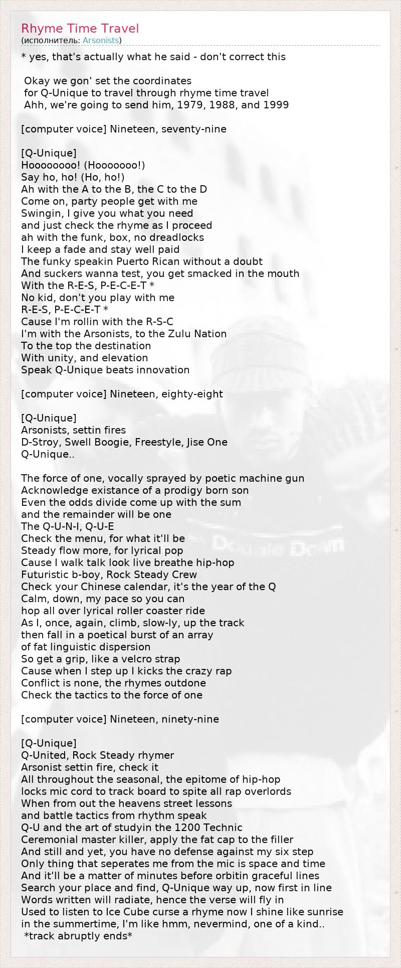 А как ты думаешь, о чем песня "Rhyme Time Travel" ?