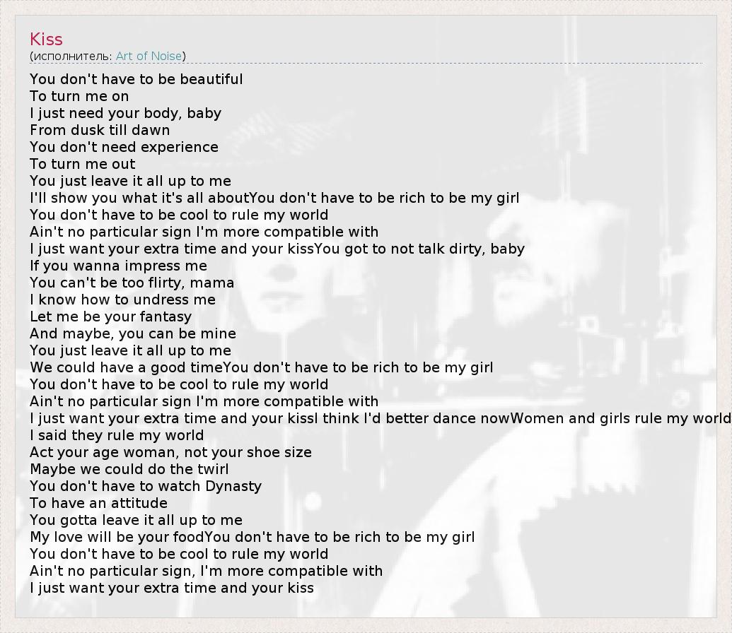 А как ты думаешь, о чем песня "Kiss" ?