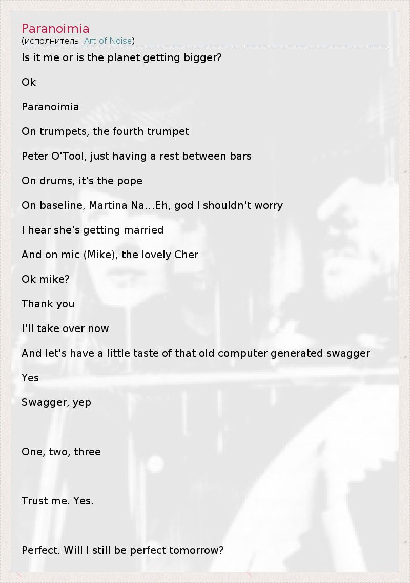 А как ты думаешь, о чем песня "Paranoimia" ?