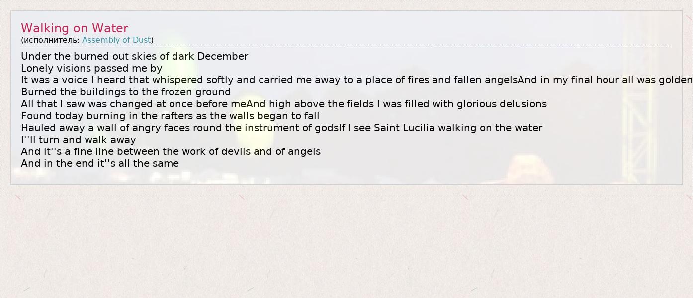 А как ты думаешь, о чем песня "Walking on Water" ?