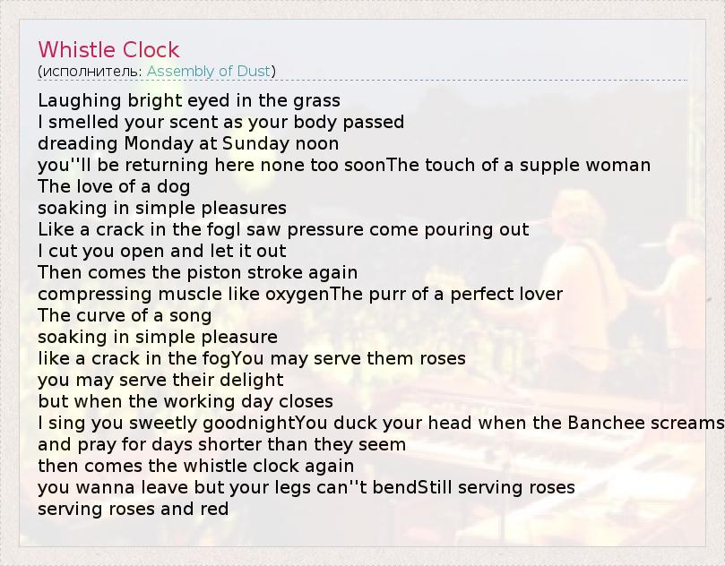 А как ты думаешь, о чем песня "Whistle Clock" ?