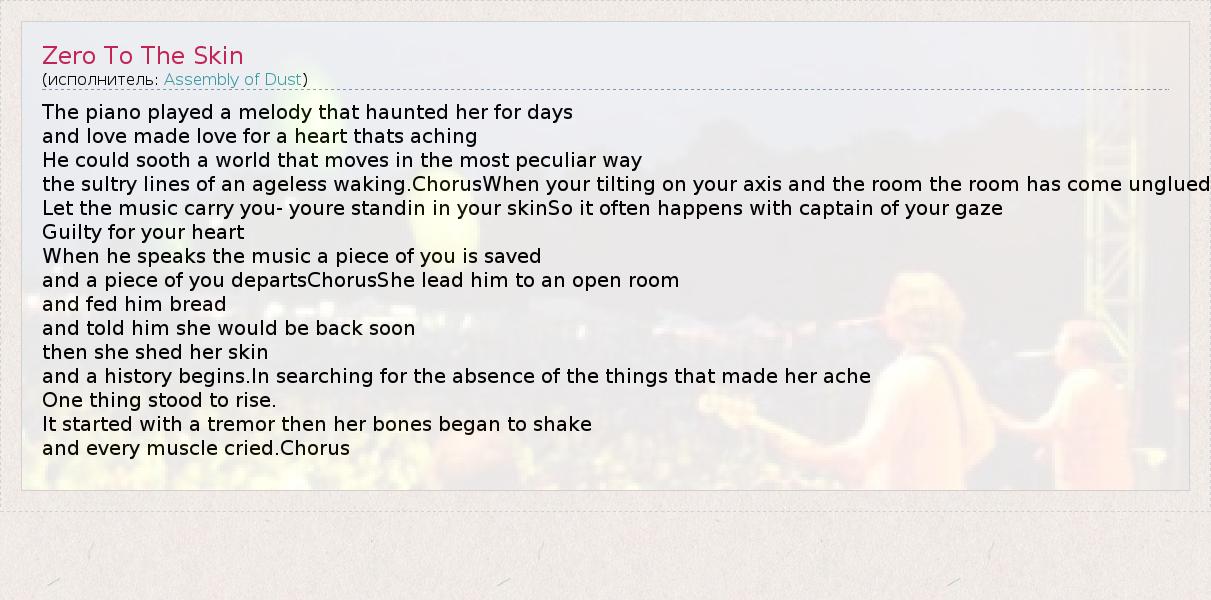 А как ты думаешь, о чем песня "Zero To The Skin" ?