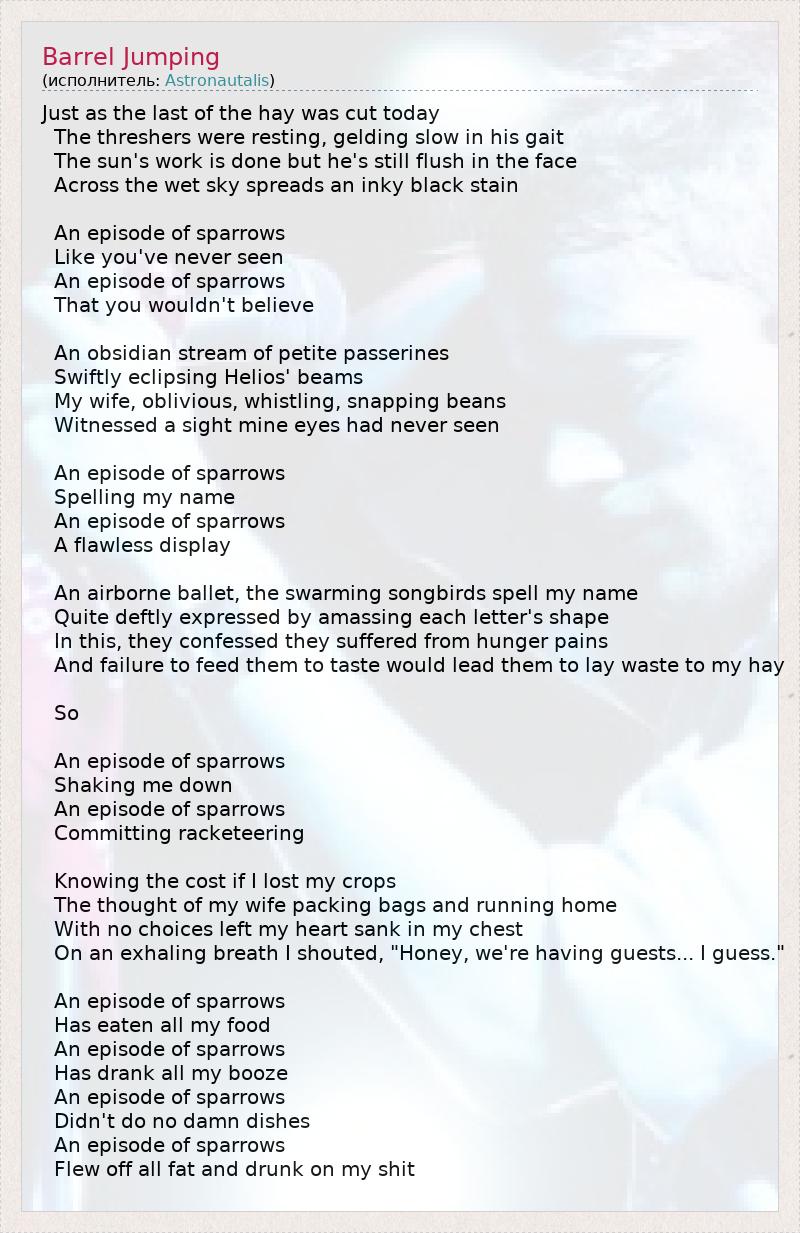 А как ты думаешь, о чем песня "Barrel Jumping" ?