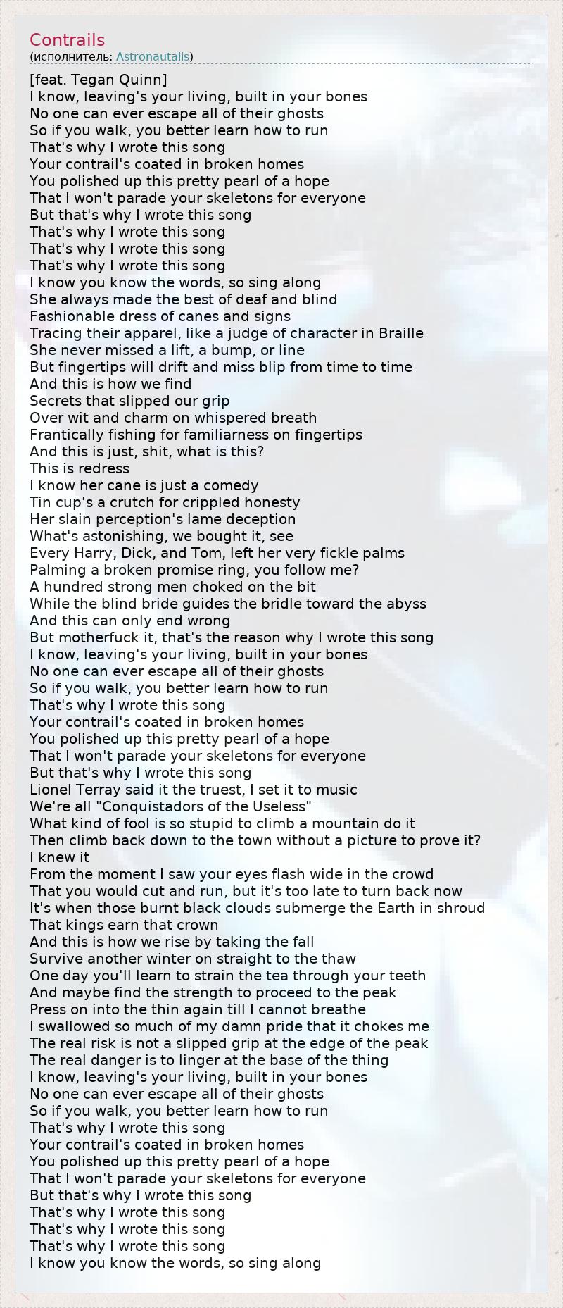 А как ты думаешь, о чем песня "Contrails" ?